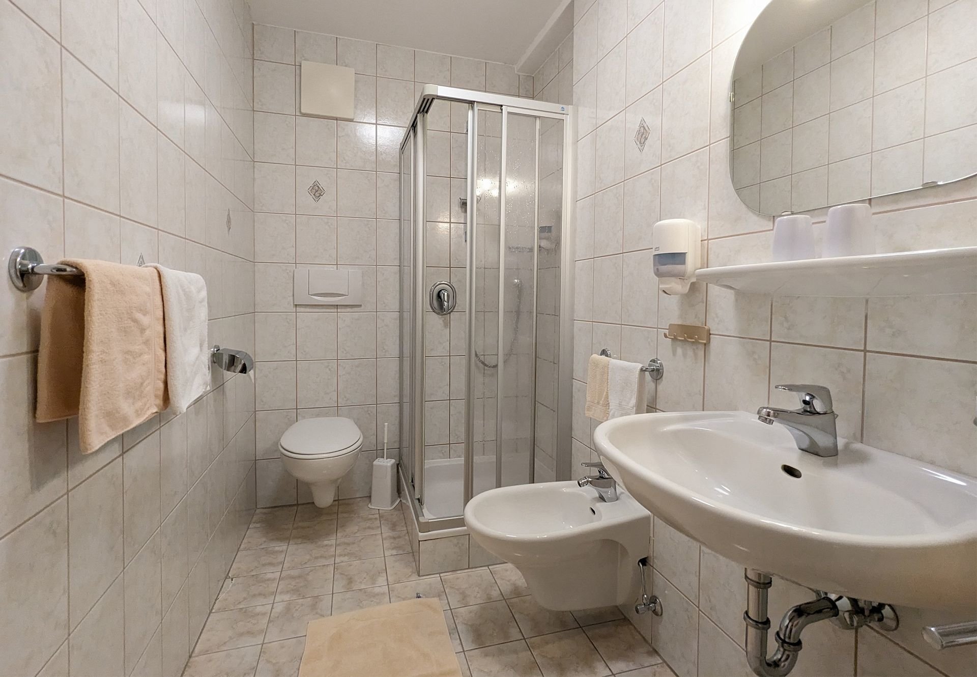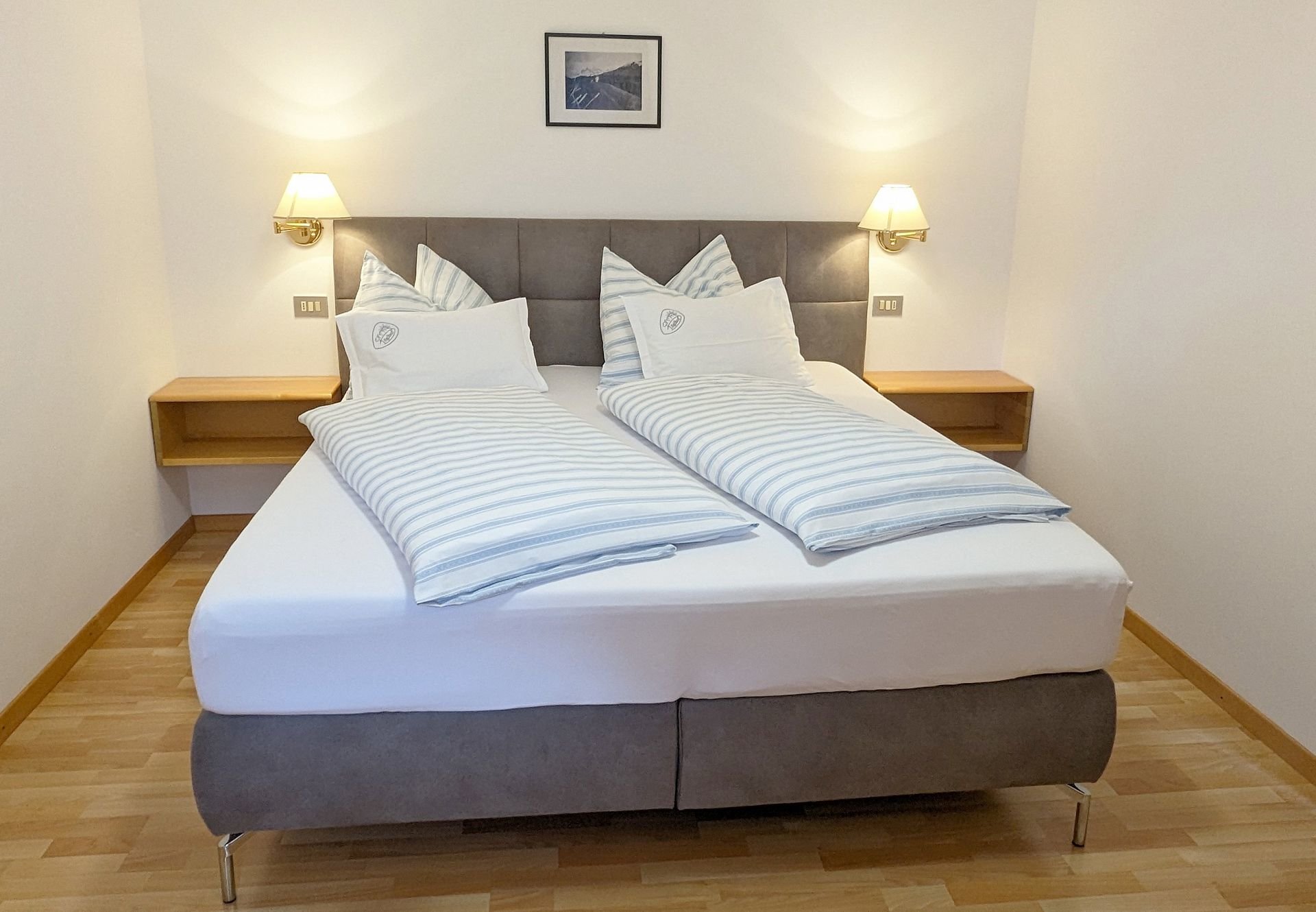 Viel Raum für mehrere Personen bieten die Multi-Room Wohnungen, renoviert in den Jahren 2021 und 2022.Ausstattung: Zwei Doppelzimmer (jedes mit eigener Dusche/WC), Wohnraum, Balkon, Kochnische (Elektroherd, Kühlschrank, Kaffeemaschine, Kochgeschirr), Sat‑TV, Safe, W‑LAN Internetzugang; Bettwäsche, Handtücher und Geschirrtücher sind vorhanden.